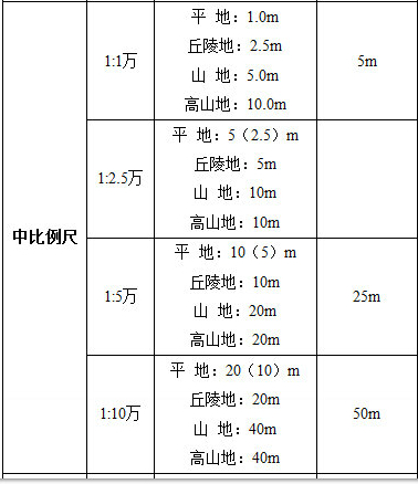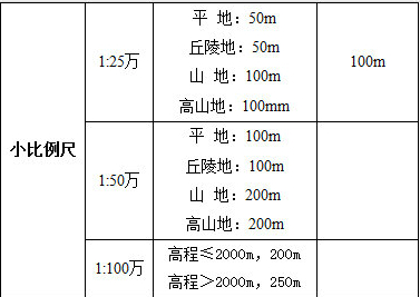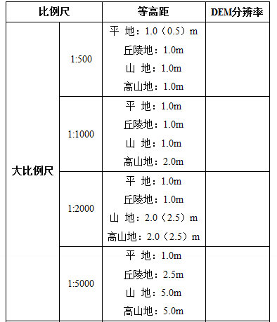常見比比例尺、等高距和DEM分辨率關(guān)系如下表所示:
