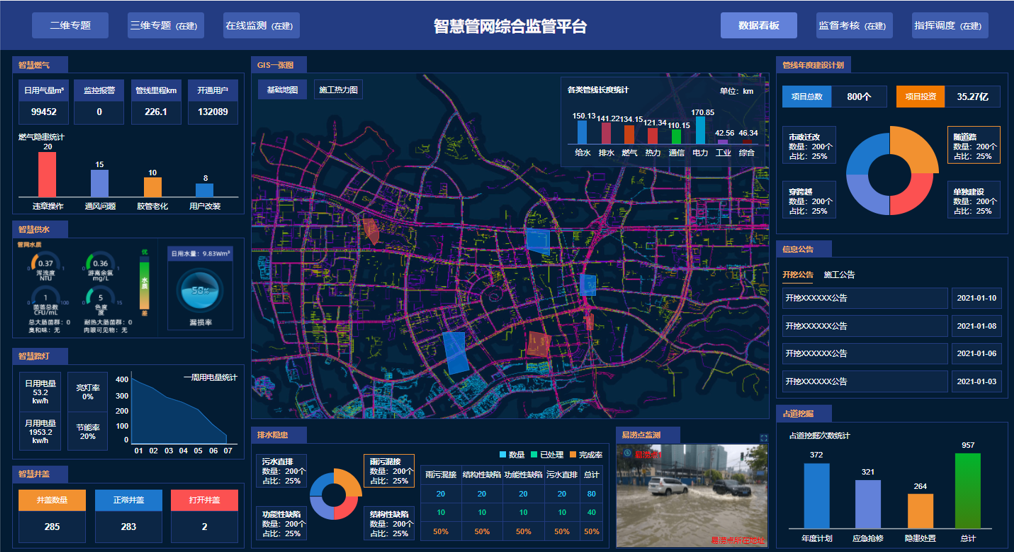 如智慧管網平臺,圍繞城市地下綜合管網的全生命周期,從規(guī)劃報建—建設施工—竣工驗收—綜合應用—管線運維,針對各階段業(yè)務需求研發(fā)的產品體系,構建一套完整的智慧管網產品序列,從而實現(xiàn)地下管網數據的一體化動態(tài)更新和業(yè)務應用可視化的智能管理。